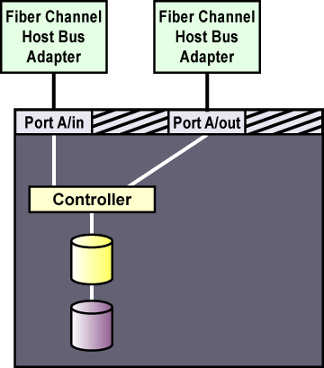 A single-initiator Fibre Channel interconnect has only one node connected to it. This may provide better host isolation and better performance than a multi-initiator bus. Single-initiator interconnects ensure that each node is protected from disruptions due to the workload, initialization, or repair of the other node.